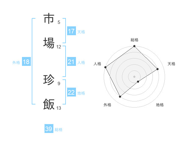 市場 珍飯さんを姓名の画数から五運を鑑定
