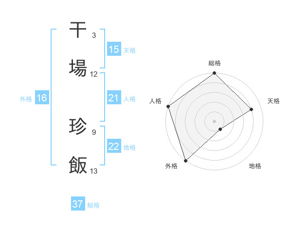 干場 珍飯さんを姓名の画数から五運を鑑定