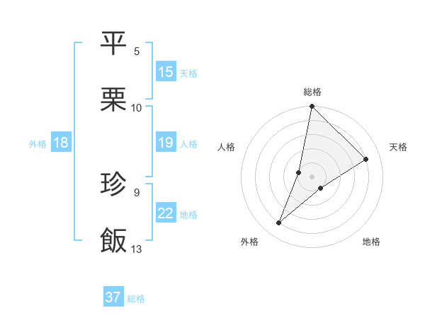 平栗 珍飯さんの総格は37画の5点!