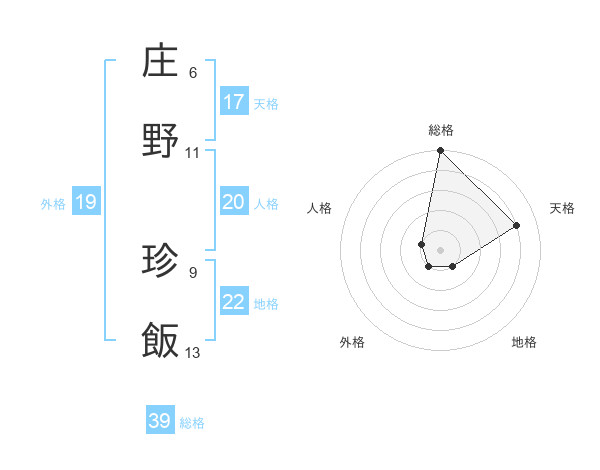 庄野 珍飯さんを姓名の画数から五運を鑑定