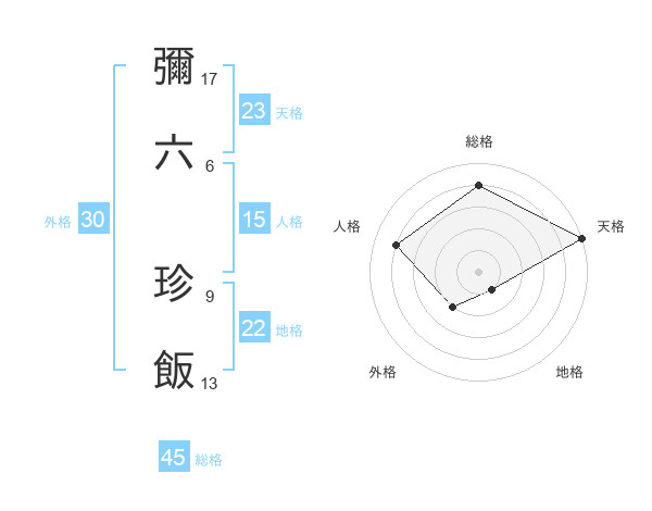 彌六 珍飯さんの総格は45画の4点!