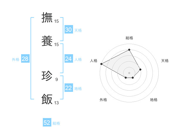 撫養 珍飯さんの総格は52画の4点!