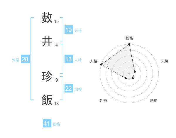 数井 珍飯さんの総格は41画の5点!