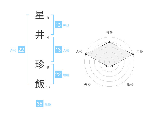 星井 珍飯さんを姓名の画数から五運を鑑定