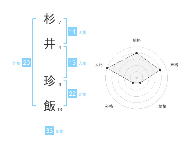 杉井 珍飯さんの総格は33画の4点!