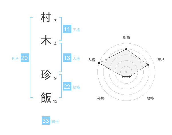 村木 珍飯さんの総格は33画の4点!