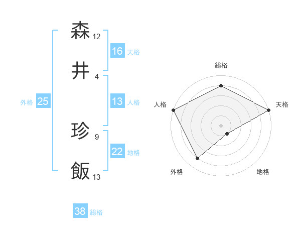 森井 珍飯さんを姓名の画数から五運を鑑定