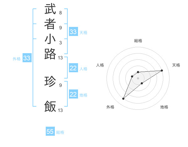 武者小路 珍飯さんの総格は55画の1点!
