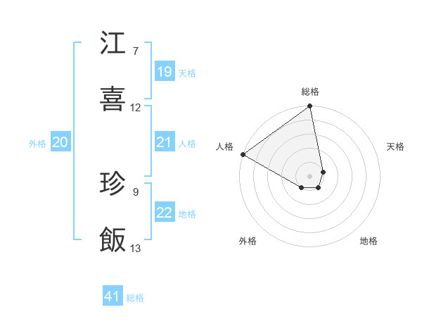 江喜 珍飯さんを姓名の画数から五運を鑑定