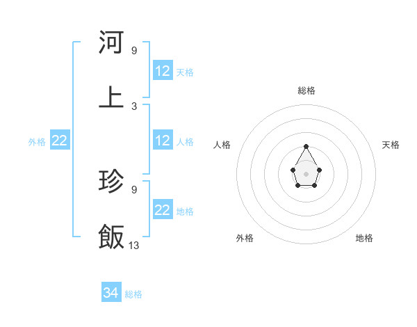 河上 珍飯さんを姓名の画数から五運を鑑定