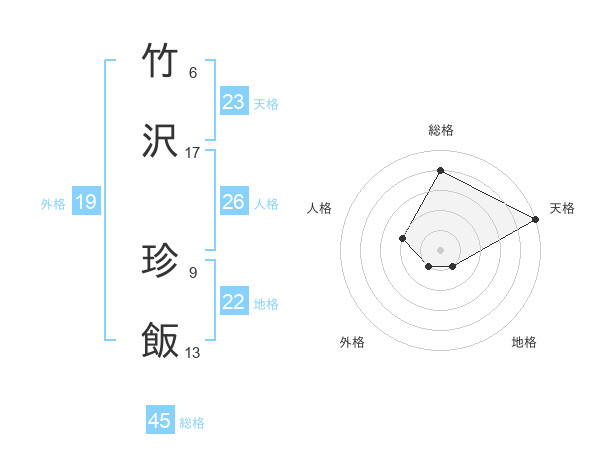 竹沢 珍飯さんの総格は45画の4点!