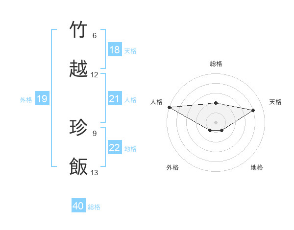 竹越 珍飯さんを姓名の画数から五運を鑑定