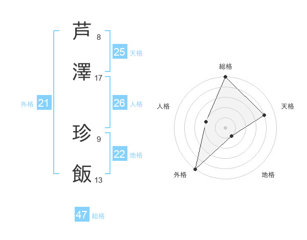 芦澤 珍飯さんを姓名の画数から五運を鑑定