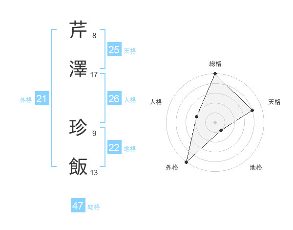 芹澤 珍飯さんの総格は47画の5点!