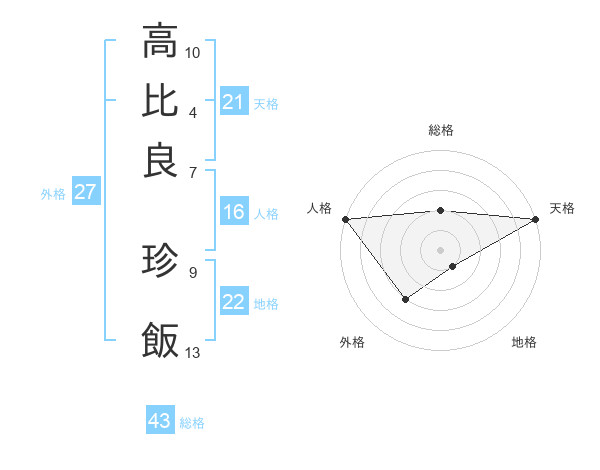 高比良 珍飯さんの総格は43画の2点