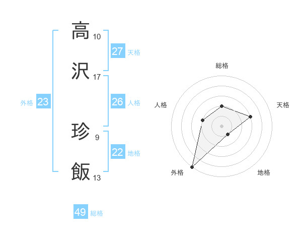 高沢 珍飯さんの総格は49画の2点!