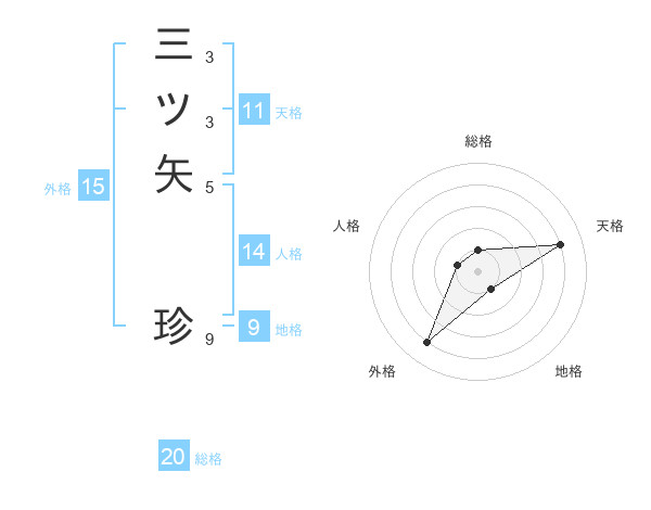 三ツ矢 珍さんの総格は20画の1点!