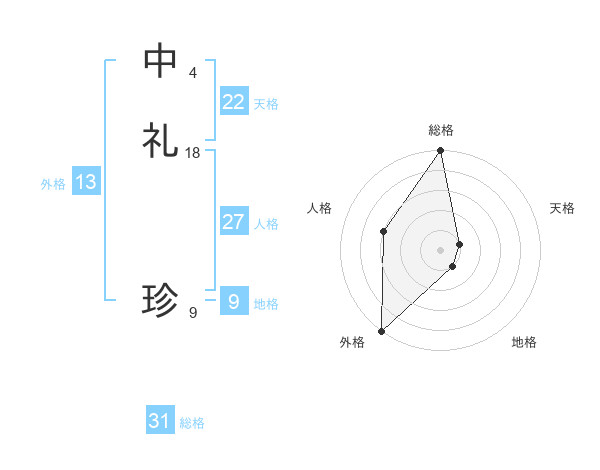 中礼 珍さんの総格は31画の5点!
