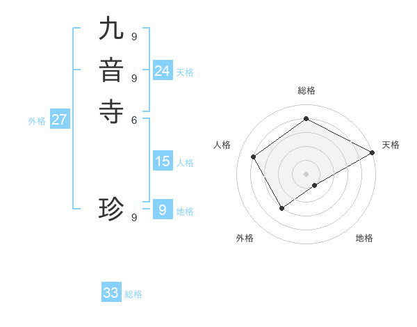 九音寺 珍さんの総格は33画の4点!