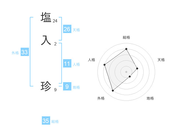 塩入 珍さんの総格は35画の4点!