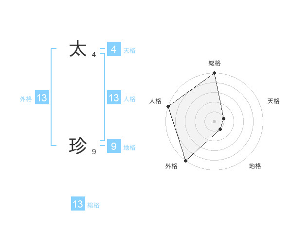太 珍さんの総格は13画の5点!