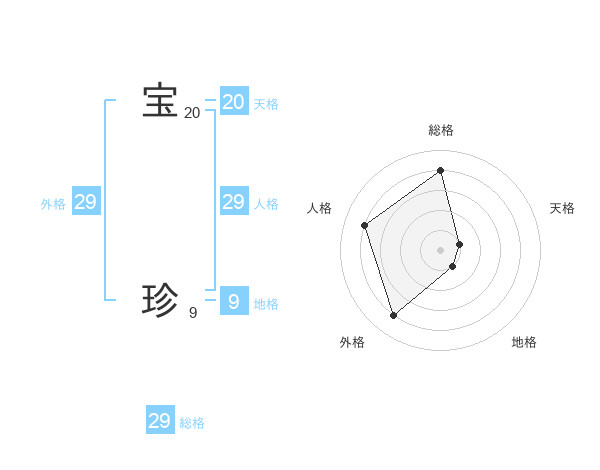 宝 珍さんの総格は29画の4点!