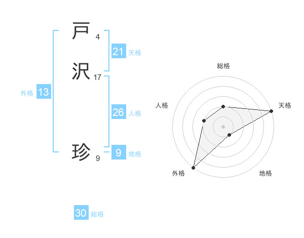 戸沢 珍さんを姓名の画数から五運を鑑定