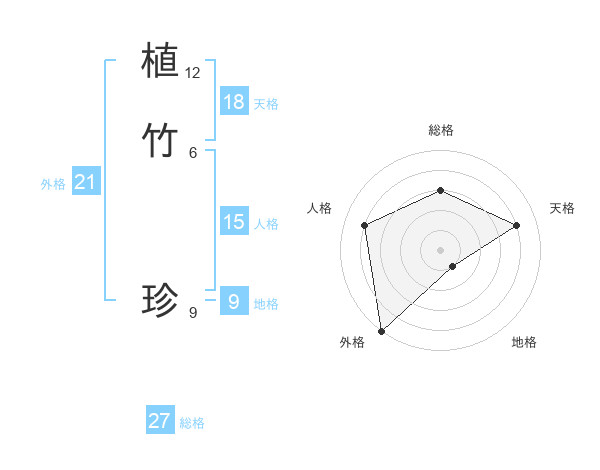 植竹 珍さんの総格は27画の3点!
