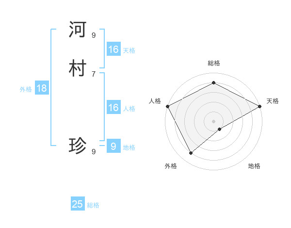 河村 珍さんの総格は25画の4点!