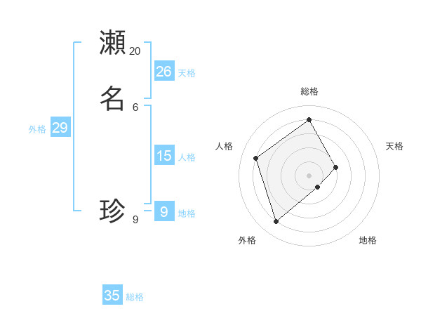 瀬名 珍さんを姓名の画数から五運を鑑定