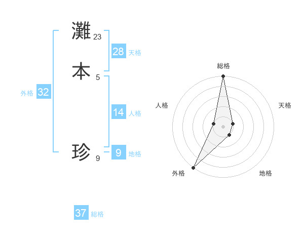 灘本 珍さんの総格は37画の5点!