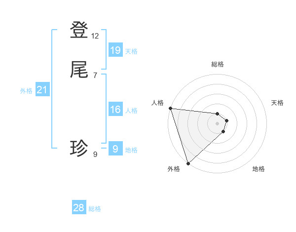 登尾 珍さんの外格は21画の5点!