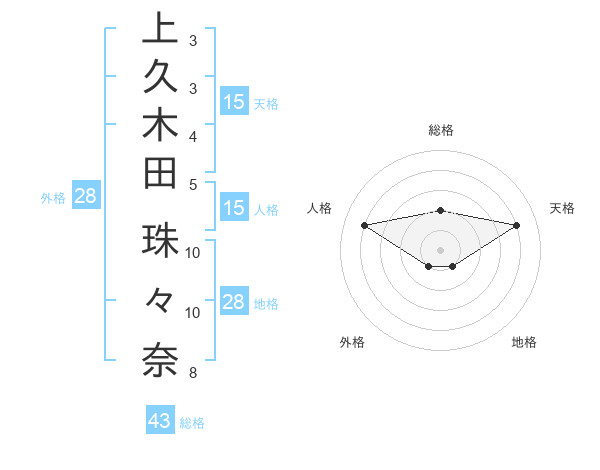 上久木田 珠々奈さんを姓名の画数から五運を鑑定