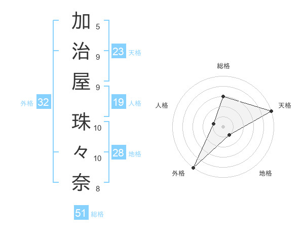 加治屋 珠々奈さんを姓名の画数から五運を鑑定