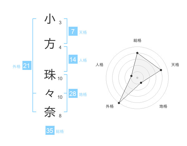 小方 珠々奈さんを姓名の画数から五運を鑑定