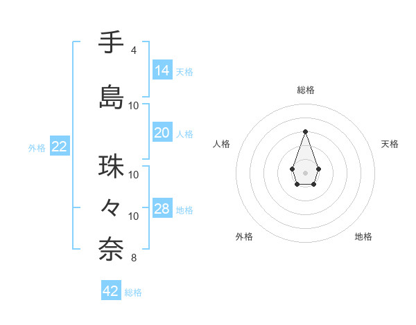 手島 珠々奈さんを姓名の画数から五運を鑑定
