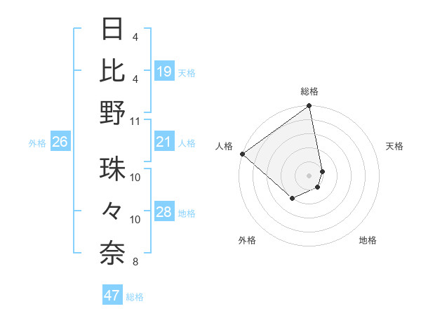 日比野 珠々奈さんを姓名の画数から五運を鑑定