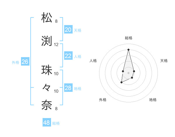 松渕 珠々奈さんを姓名の画数から五運を鑑定