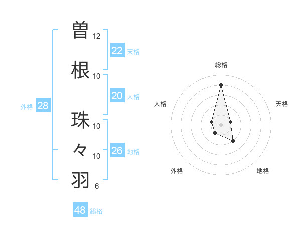 曽根 珠々羽さんの総格は48画の4点