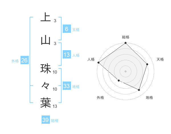 上山 珠々葉さんの総格は39画の5点!