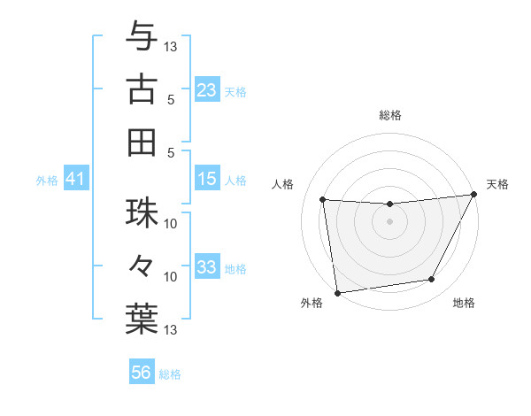 与古田 珠々葉さんの外格は41画の5点!