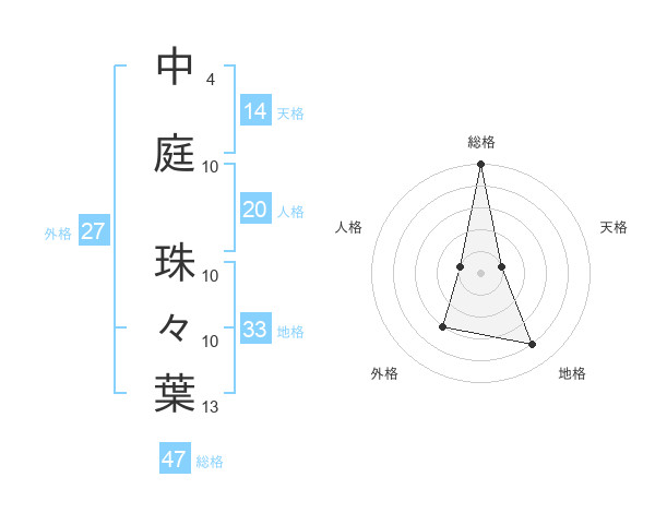 中庭 珠々葉さんを姓名の画数から五運を鑑定