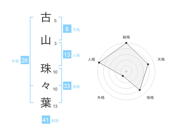 古山 珠々葉さんを姓名の画数から五運を鑑定