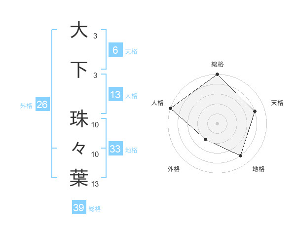 大下 珠々葉さんを姓名の画数から五運を鑑定