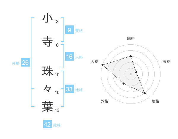 小寺 珠々葉さんを姓名の画数から五運を鑑定
