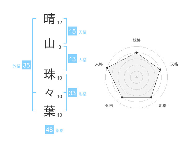 晴山 珠々葉さんを姓名の画数から五運を鑑定