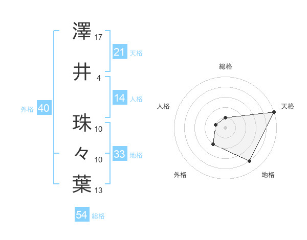 澤井 珠々葉さんを姓名の画数から五運を鑑定