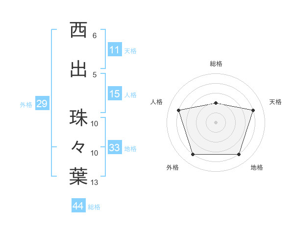 西出 珠々葉さんを姓名の画数から五運を鑑定
