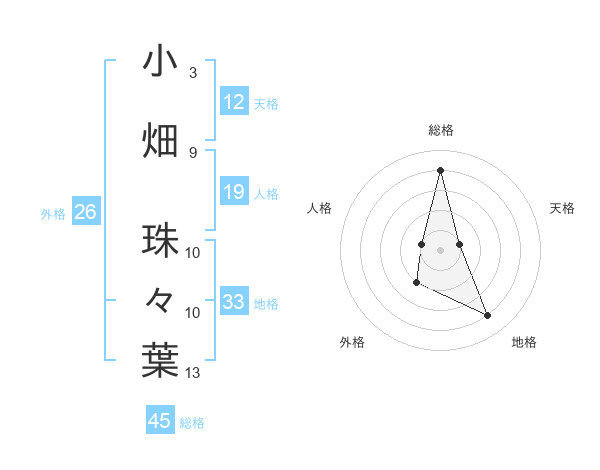 小畑 珠々葉さんを姓名の画数から五運を鑑定