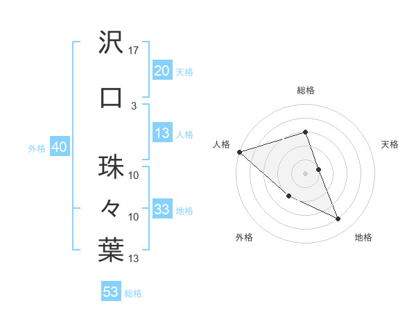 沢口 珠々葉さんを姓名の画数から五運を鑑定